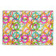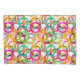 Esta pilheta tem um design geométrico de três círculos aninhados e espalhados pelo design em várias cores.