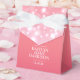 Caixa de tenda de casamento ideal para mostrar seu apreço aos seus assistentes ao seu casamento. O champanhe cor-de-rosa moderno brilha em tons de rosa e branco. Design de casamento chic moderno e fascinante parte do jogo de papelaria de casamento de champanhe. Dê aos seus convidados presentes de festa de casamento e favores nessas lindas caixas de bonitos favores de tenda. Personalize com o nome da sua noiva e noiva e a data do casamento. Arte exclusiva e design por Sarah Trett.