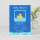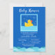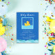 Este adorável Ducky de Borracha que está gostando de um banho de bolhas é um convite perfeito para o chá de fraldas. Com as bolhas flutuando no ar, apenas exemplifica a alegria do que uma futura mãe está sentindo sobre sua nova chegada! Você pode alterar o texto facilmente para adicionar as informações de sua parte. Há suprimentos de parte correspondentes com este convite.