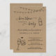 Bolhas de Bourbon e Convite ao Chá de fraldas - Luzes de cordas desenhadas à mão, garrafa de bebê, e uma torrada de champanhe e uísque num fundo kraft maravilhosamente rústico.
