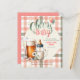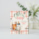 Beers and Bottles, Cheers to Baby, Baby is Brewing with wildflower, greenerase in sage and peach color (padrão de Xadrez de gingham e Polkadots) convite para chás de fraldas, neutro em relação ao gênero. Campos de texto em ambos os lados.