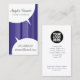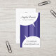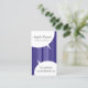 Duas bolhas de fala aparecem no topo e no fundo, contendo seu nome e detalhes, sobre um fundo violeta colorido listrado. Uma design divertida, informal, adequada para profissões e empresas que envolvem comunicações ou marketing. Adaptado de um design por VectorPortal.com