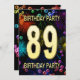 Adicione um nome para personalizar este convite de festas exclusivo. 89º convite de aniversário com fogos de artifício e bolhas. Adicione seu dentro de detalhes para criar um convite divertido perfeito. Acenda o céu com estes fogos de artifício gloriosos. Um convite para uma festa de aniversário que tem estilo e muita diversão.