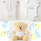 A toalha deste bebê com bolhas azuis e patos-bebê amarelos não é apenas prática, mas também visualmente atraente. Combina suavidade, conforto e uma design divertida para criar uma experiência balnear agradável tanto para o bebê como para os pais.