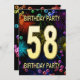 Adicione um nome para personalizar este convite de festas exclusivo. 58º convite de aniversário com fogos de artifício e bolhas. Adicione seu dentro de detalhes para criar um convite divertido perfeito. Acenda o céu com estes fogos de artifício gloriosos. Um convite para uma festa de aniversário que tem estilo e muita diversão.
