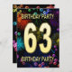 Adicione um nome para personalizar este convite de festas exclusivo. 63º convite de aniversário com fogos de artifício e bolhas. Adicione seu dentro de detalhes para criar um convite divertido perfeito. Acenda o céu com estes fogos de artifício gloriosos. Um convite para uma festa de aniversário que tem estilo e muita diversão.