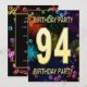 Adicione um nome para personalizar este convite de festas exclusivo. 94º convite de aniversário com fogos de artifício e bolhas. Adicione seu dentro de detalhes para criar um convite divertido perfeito. Acenda o céu com estes fogos de artifício gloriosos. Um convite para uma festa de aniversário que tem estilo e muita diversão.