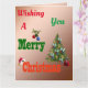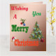 A imagem mostra um alegre Natal verde e vermelho com boliche na grama decorando uma árvore de Natal, chapéu de Papai Noel de boliche na grama, sacola de Natal de boliche na grama e enfeites de boliche na grama