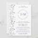 A flor da água azul empoeirada cai no convite de casamento de flores minúsculas florais. Convite para casamento de flores pequenas e elegantes azuis.