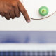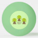 Esta incrível Bola Ping Pong mostra uma imagem gráfica de três árvores que se assemelham a palmeiras com grandes frondes verdes de folha e um tronco de árvore marrom resistente. Há uma mensagem em texto marrom para parecer solo debaixo das árvores. A mensagem diz Feliz Dia da Terra.