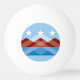 Ping Pong Ball com uma design com a bandeira de Peoria, Arizona. Uma bandeira azul, marrom e branca com picos de montanha e três estrelas