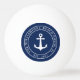 Crie uma bola de ping náutico personalizada para sua praia ou casa do lago. O design azul e branco do marinho apresenta um texto âncora e modelo.