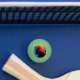 cabeça de monstro colorida que vive nos estados de plástico num mar de azul