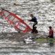 Um design de arte de ventoinhas no mar em Aberdyfi Wales, Reino Unido.