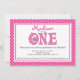 Comece sua festa de primeiro aniversario com nosso adorável convite de festa de aniversario de meninas do alfabeto rosa bolinhas. Nosso convite de aniversário de meninas fofo apresenta a palavra "um" em um padrão de bolinhas rosa e branco quente definido em um fundo branco com um quadro de borda pontilhado cor-de-rosa e branco.