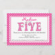 Comece sua festa de aniversário 5 com nosso adorável convite de festa de aniversario de meninas do alfabeto rosa do alfabeto bolinhas. Nosso convite de aniversário de meninas fofo apresenta a palavra "cinco" em um padrão de bolinhas rosa e branco quente, definido em um fundo branco com um quadro de borda pontilhada polka rosa e branca.