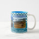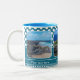 Imagem de bolinhas azul com suas próprias fotos e textos personalizados. Esta caneca também está disponível em outras cores. É bom criar um para cada membro da família ou para todos no escritório!