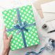 Um papel de embrulho construído com um padrão de bolinhas branco sobre um fundo verde-claro. Personalize o plano de fundo verde de uma maneira fácil.