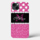 Monograma de Bolinhas brancas cor-de-rosa brilhante. Elke Clarke©. Design original. Disponível em outras combinações de cores na nossa loja Monogramgallery © no Zazzle. MODERNO HOT PINK GLITTER (EFEITO FOTOGRÁFICO IMPRESSO) COM PADRÃO DE PONTO PRETO E TINTO, MONOGRAMADO COM SEU NOME, SEU INICIAL OU MONOGRAMA EM UMA FAIXA NEGRA OU BANDA COM UMA FRONTEIRA DE DIAMANTES BRANCOS IMPRESSOS. TRENDY, CHIC LEGAL DESIGN PARA ELA, A TRENDSETTER, A FASHIONISTA