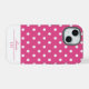 Adicione um toque de charme lúdico ao seu telefone com este gabinete chic iPhone 15 com um padrão de bolinhas branco e rosa. Projetado para aqueles que amam um estilo divertido e feminino, este caso também é personalizável para torná-lo exclusivamente seu. Personalize-o com o seu primeiro nome numa bela escrita, e adicione as suas iniciais num monograma de na moda para uma dose extra de sofisticação. Também faz um presente excelente para aniversários e todas as ocasiões.