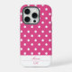 Adicione um toque de charme lúdico ao seu telefone com este gabinete chic iPhone 15 Pro com um padrão de bolinhas branco e rosa. Projetado para aqueles que amam um estilo divertido e feminino, este caso protetor e resistente também é personalizável para torná-lo exclusivamente seu. Personalize-o com o seu primeiro nome numa bela escrita, e adicione as suas iniciais num monograma de na moda para uma dose extra de sofisticação. Também faz um presente excelente para aniversários e todas as ocasiões.
