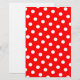 Pontos brancos contra um fundo vermelho brilhante. O padrão de bolinhas branca é inclinado em uma inclinação diagonal.