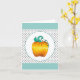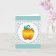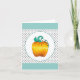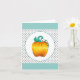 Cartão de saudação de outono bonito, com ilustração clássica de uma abóbora laranja brilhante, com caule e folhas encaracoladas, sobre fundo de bolinhas com sotaque. Vazio no dentro.