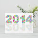 Feliz ano novo 2014 Silhueta com Bolinhas coloridas e ilustração de reflexo isolada em placa de convite em segundo plano branca