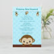 Tem um macaquinho giro espreitando sobre o caminho do berço. Três macacos adicionais ficam por cima de uma faixa.Características: BOLINHAS e tons do tema de cor AZUL. Este design em particular também vem com cores diferentes. Perfeito para um rapaz!
