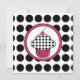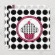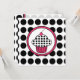 Um convite com um cupcake rosa-quente descrito em dentro preto com quadros rosa e preto correspondentes. O fundo é branco com bolinhas pretas. O lado oposto apresenta um plano de fundo de bolinhas com texto preto e rosa sobre o lado dela. Personalize com detalhes do evento.