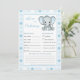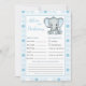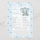Cartão Azul de bolinhas Elefante, Aviso e Previsão. Adicione suas previsões sobre o novo bebê e deixe seus melhores desejos.