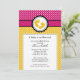 O convite adorável do chá de fraldas que caracteriza pegadas do bebê ajustou-se em um fundo das bolinhas do verde cor-de-rosa & amarelo. Artigos de harmonização disponíveis em nossa loja. Aperfeiçoe para um chá de fraldas do bebé.