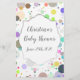 Este cartão de jogo de chá de fraldas apresenta uma fonte moderna de escrita em fundo multicolor de pontos, perfeita para um bebê, uma menina ou uma surpresa! Use este cartão para sua festa de revelação de gênero!