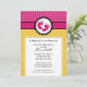 O convite adorável do chá de fraldas que caracteriza pegadas do bebê ajustou-se em um fundo das bolinhas do rosa & do verde limão. Artigos de harmonização disponíveis em nossa loja. Aperfeiçoe para um chá de fraldas do bebé.