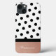 Crie sua própria foto personalizada de efeito de folha metálica rosa-ouro com uma banda preta na horizontal com pontos de foto brancos e pretos. Padrão de pontos de fotos em branco e preto. Adicione sua própria foto. Crie seu próprio design de texto personalizado. Experimente as melhores designs em outros estilos de gabinete.