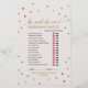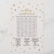 Este jogo de bolinhas de ouro "ele disse que ela disse" é perfeito para um chá de panela elegante. A frente do cartão de jogo apresenta "ele disse que ela disse" o que é um teste divertido sobre noiva e noivo. A parte de trás do cartão contém uma palavra encontrada com palavras e frases relacionadas ao casamento. O simples design apresenta um confete de ouro cônico sobre um fundo de champanhe cremoso com uma bela caligrafia de folha de ouro falsa. Personalize o cartão de jogo com o nome das noivas e a data do chá de panela. Nota: Este design não apresenta folha de ouro real. É um gráfico de alta qualidade feito para se parecer com folhas de ouro.