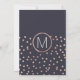 Bolinhas rosa de ouro elegantes, quentes e modernas imprimidas, e fundo azul marinho, convites para casamento. Este design clássico e sofisticado é perfeito para o casal de competição de tendências e na moda. Personalize com sua própria mensagem na frente, assim como um monograma personalizado inicial no verso. Todas as impressão de fotos.
