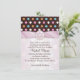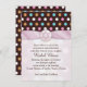 Padrão colorido de bolinhas decorado com imagens impressas de fita e pérola cor-de-rosa. Você pode remover a imagem de Star do David e usar este convite para qualquer ocasião.