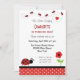 Convite de aniversário com tema de ladybug e combinação de cor vermelho-preto.