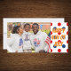 Este cartão de foto achatado é um dos meus designs mais antigos. Mas, é fácil criar uma design como, por exemplo, centralizar a foto da sua família contra as bolinhas patrióticas vermelha, branca e azul, se você quiser. Ou, você pode adicionar uma mensagem de texto curta à direita em uma fonte bem negrito. Na imagem de exemplo, eu usei uma laranja brilhante. Crie seu próprio padrão de bolinhas vermelho, branco e azul para o dia 4 de julho.