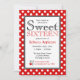 Na moda doce dezesseis convites de aniversário com bolinhas brancas sobre vermelho. Personalize com os detalhes da festa e escolha o tipo de papel também!