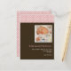 Anúncio de nascimento de fotografias cor-de-rosa e castanho. Personalize este modelo postal fotógrafo fotógrafo fotógrafo bonitinho e na moda com a foto de sua filhinha e os detalhes para um anúncio de nascimento de uma espécie.