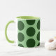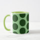 Minha arte digital original nesta caneca apresenta um padrão de bolinhas verdes escuras em um fundo verde minúsculo para um estilo artístico. A dentro da caneca e a alça estão em tom de verde limão para complementar o trabalho de arte. As cores e o padrão têm uma vibração retrô para um toque clássico. Estas são canecas de 11 onças (mas podem ser maiores se desejado), apenas do tamanho perfeito para o café ou chá da sua casa - ou mesmo chocolate quente! Ele faria um presente de excelente e você poderia colocar pacotes de café, bolsas de chá ou dentro de chocolate quente. Uma outra ideia de presente é colocar uma pequena planta nela para torná-la mais especial para o seu amado.
