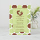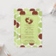 Convite para Chás de fraldas Adorável com pegadas de bebê definidas em um fundo de bolinhas verde e castanho. Itens correspondentes disponíveis em nosso compro. Perfeito para um chá de fraldas de menina.
