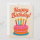 Um brilhante e alegre design de aniversário com um bolo laranja em camadas com gelo cor-de-rosa, tocado com cinco velas riscadas em cores vibrantes. O texto vermelho ousado "Feliz Aniversário!" acima adiciona ao humor festivo. O estilo de papel recortado e uma paleta de cores vívidas tornam este design perfeito para celebrações, cartões de saudação e convites de festas, trazendo uma energia divertida e alegre a qualquer ocasião de aniversário.