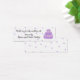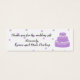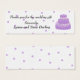 Uma maneira bonito de dizer obrigados para o presente de casamento. Um fundo branco com pontos roxos. Um bonito bolo em roxo com gelo branco e flores brancas. Personalizar conforme desejado.