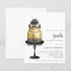 Bolo de Orçamento Florais Dourado Black 50º Convite. Preto e ouro elegância em um cartão de ponto de semivida de preço do SMALLER 4,5 x 5,6" BUDGET (semelhante à espessura de um cartão postal) para convidar seus convidados para a sua quinquagésima festa de aniversário. Um bolo elegante e florais estão à esquerda. Personalize facilmente o texto de acordo com as suas necessidades.
