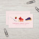 Cartão de visita para uma padaria bonita e moderna, com ilustração de bolos, tartes e frutas.