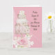 Parabéns no Dia do Casamento em rosa com um bolo e flores. Todas as palavras no cartão podem ser alteradas. Obrigado a Design para cortar alguns dos elementos no design.