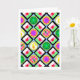 Bolos de arroz doce coloridos arranjados em um padrão decoram o cobrir deste cartão de aniversário geral. Imagem e direito de autor © 2014, Shoaff Ballanger Studios.